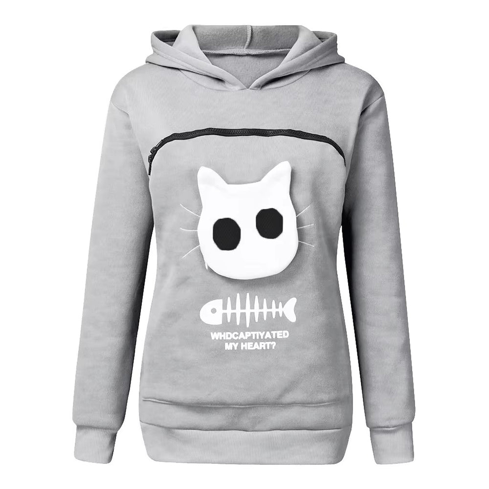 Light Gray Unisex Hoodie with Large Kangaroo Pouch Pet Carrier for Cats and Dogs...