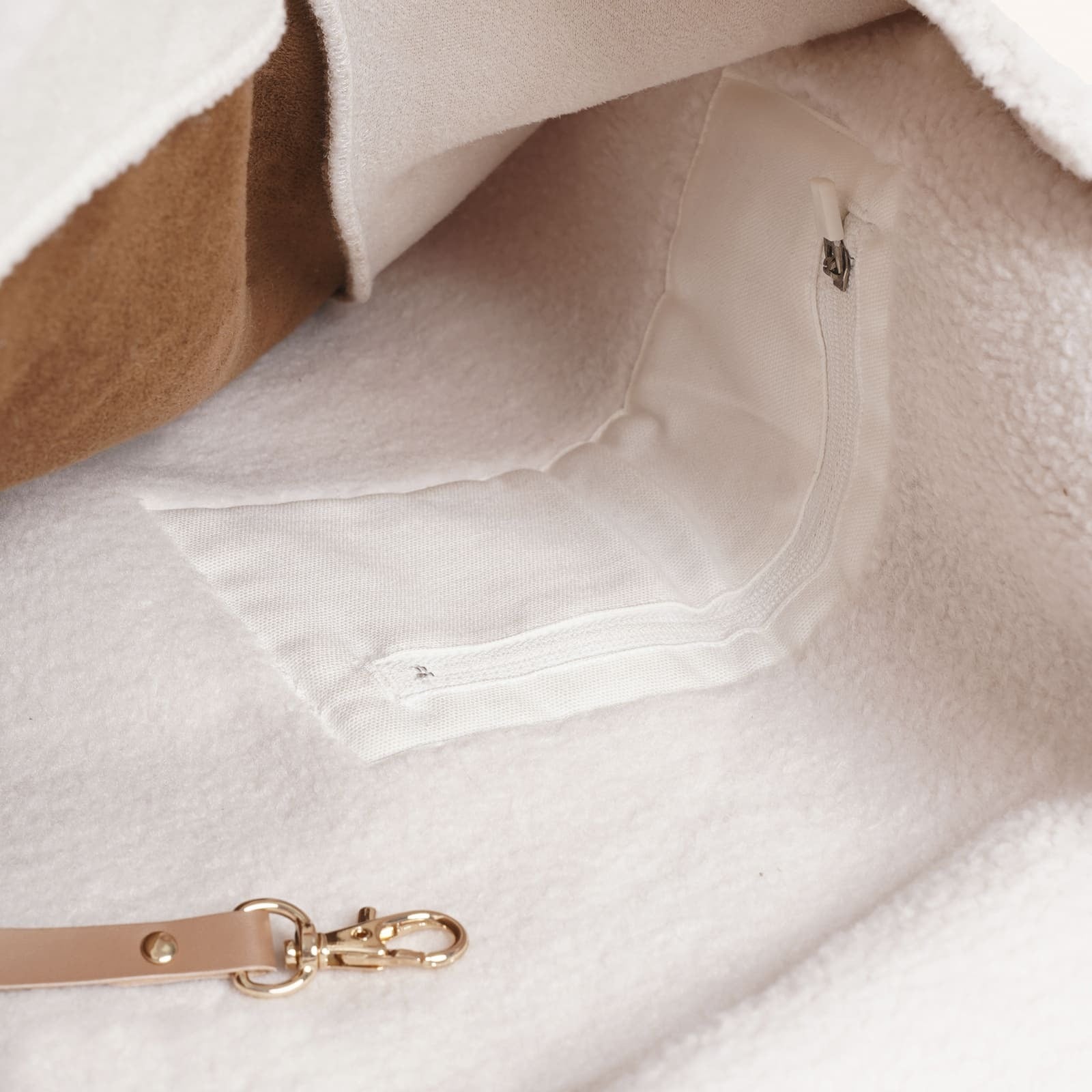 Fashion meets function. More than just a cozy pet carrier, this sweater is designed to be a fashion forward essential. The modern zipper closure at the neck offers convenience and a sleek look, while the patchwork accents and premium faux fur with suede-touch lining create a unique blend of texture and timeless style.