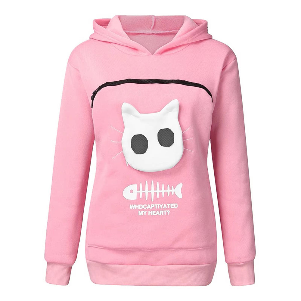 Pink Unisex Hoodie with Large Kangaroo Pouch Pet Carrier for Cats and Dogs...