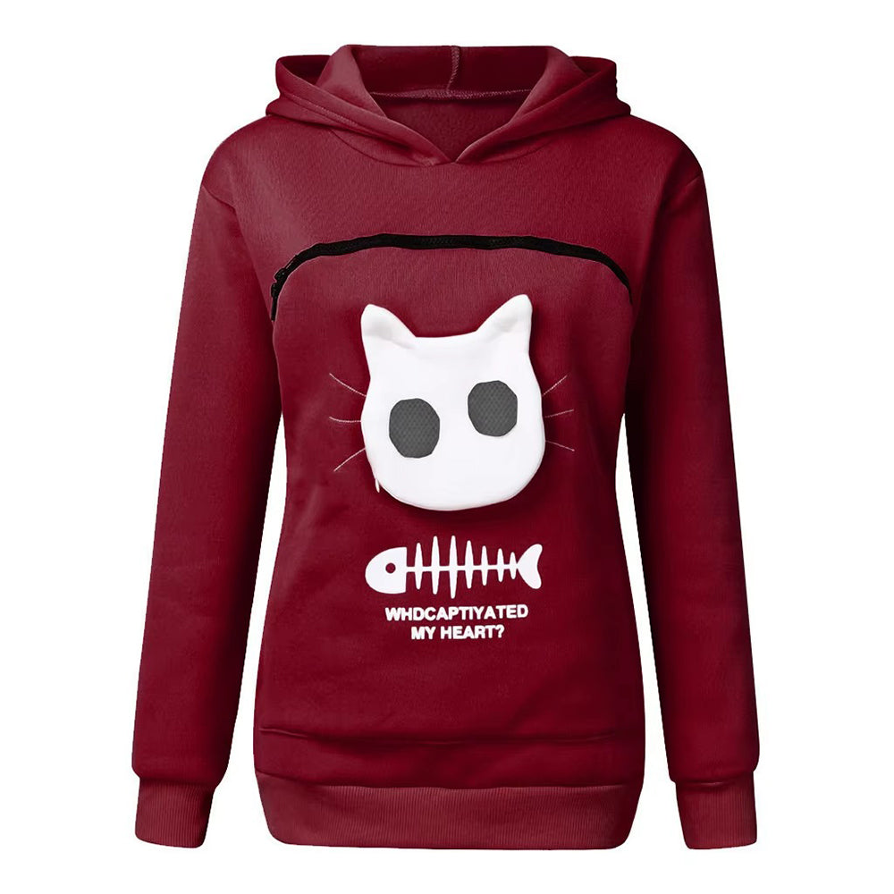 Red Wine Unisex Hoodie with Large Kangaroo Pouch Pet Carrier for Cats and Dogs...