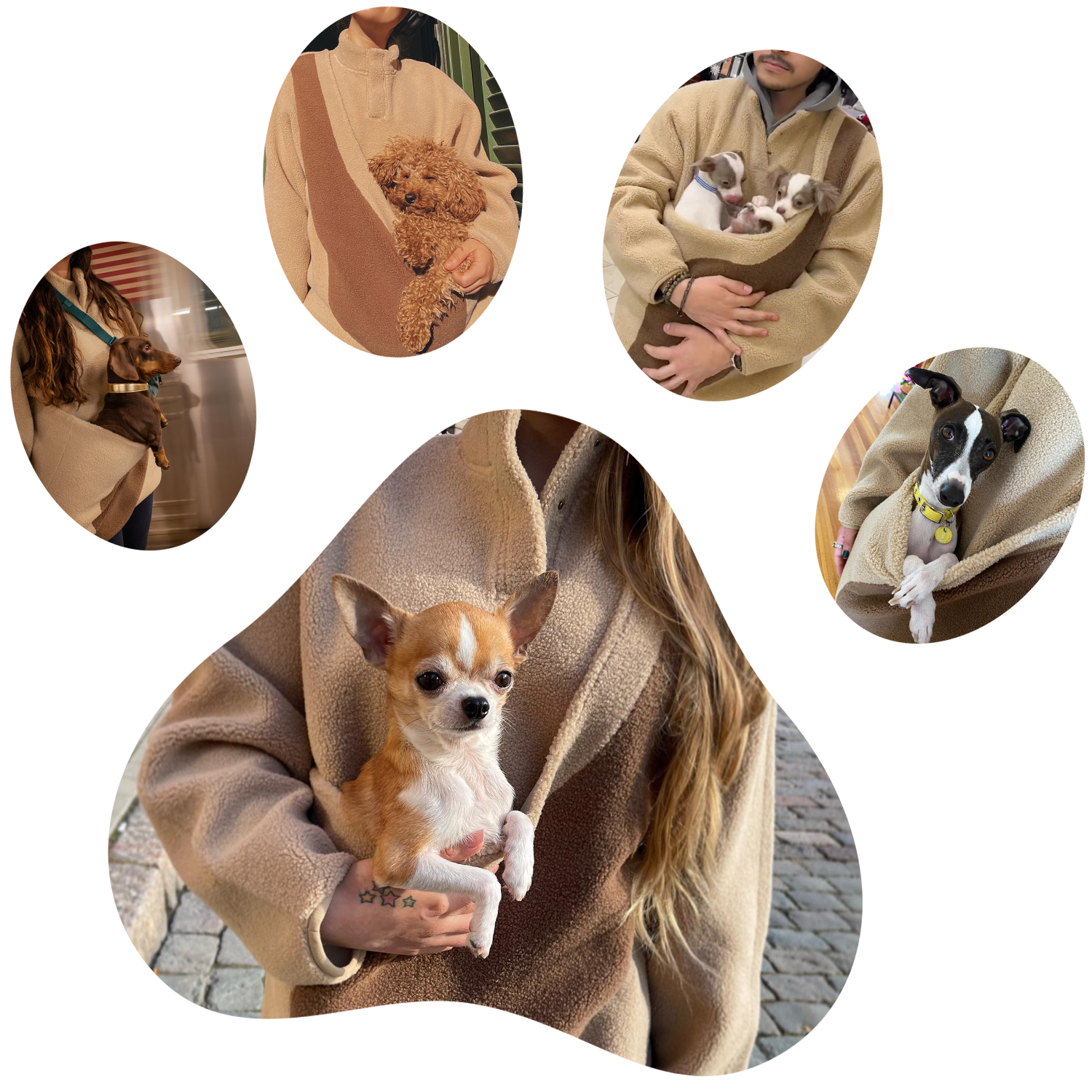 - A cozy fleece sweater and pet carrier in one, designed for pet lovers who want to stay close to their furry companions anytime, anywhere. With an extra-large kangaroo pouch, it comfortably fits cats, puppies, and other pets, keeping them safe, warm, and calm right next to you.