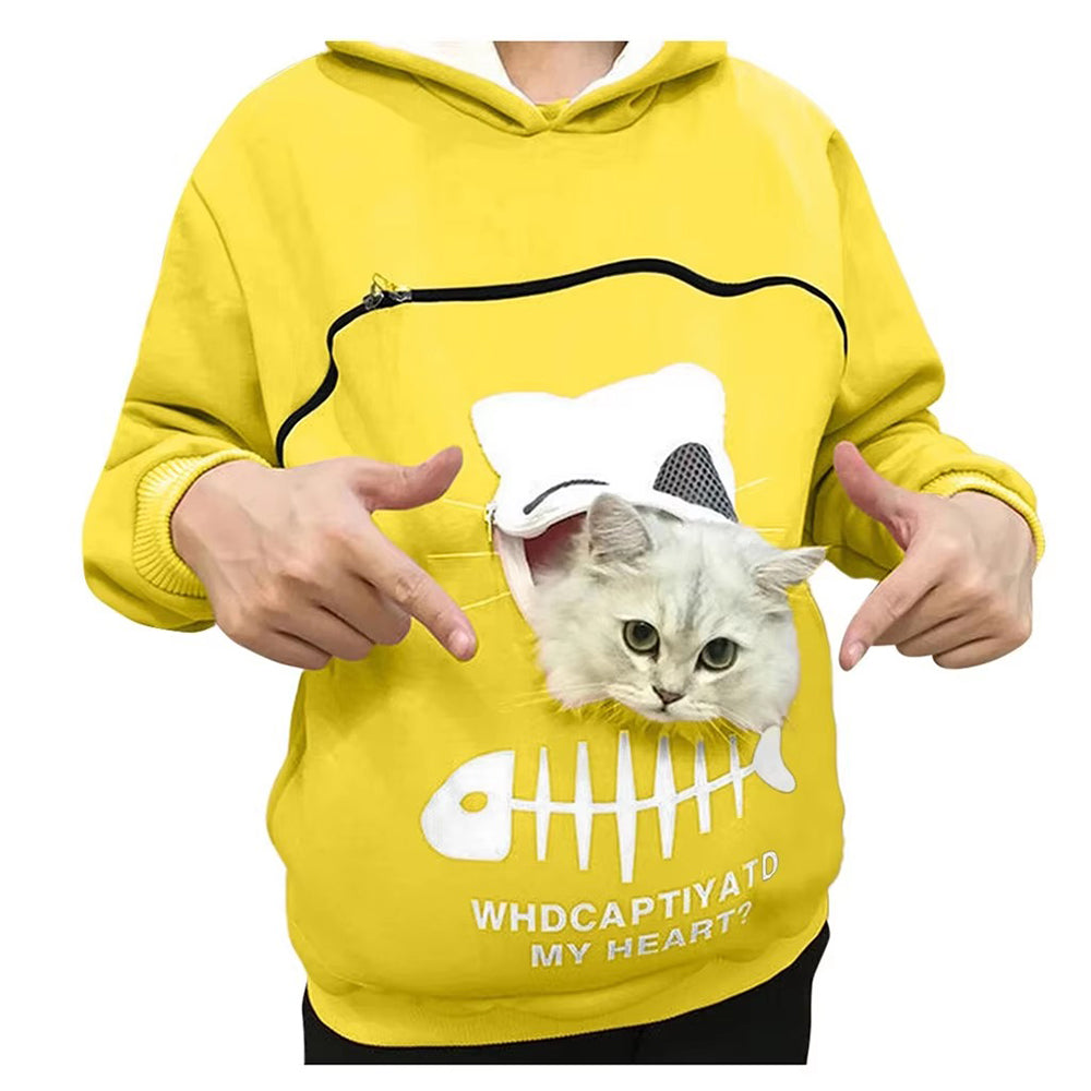 Yellow Unisex Hoodie with Large Kangaroo Pouch Pet Carrier for Cats and Dogs...
